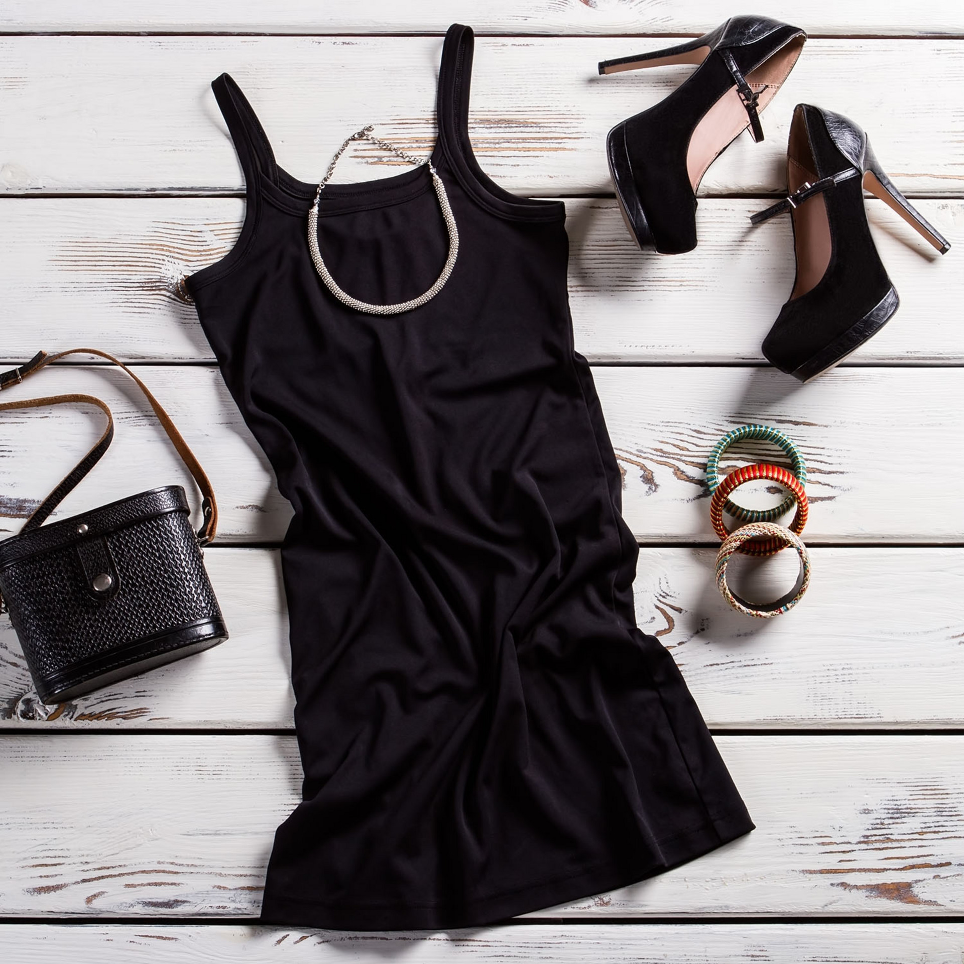 Vestito corto ELEGANT BLACK. Modello corto. Spalline sottili.