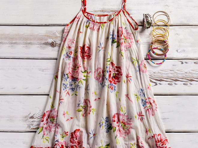 Vestitino estivo con stampa floreale. Modello corto. Spalline sottili.
